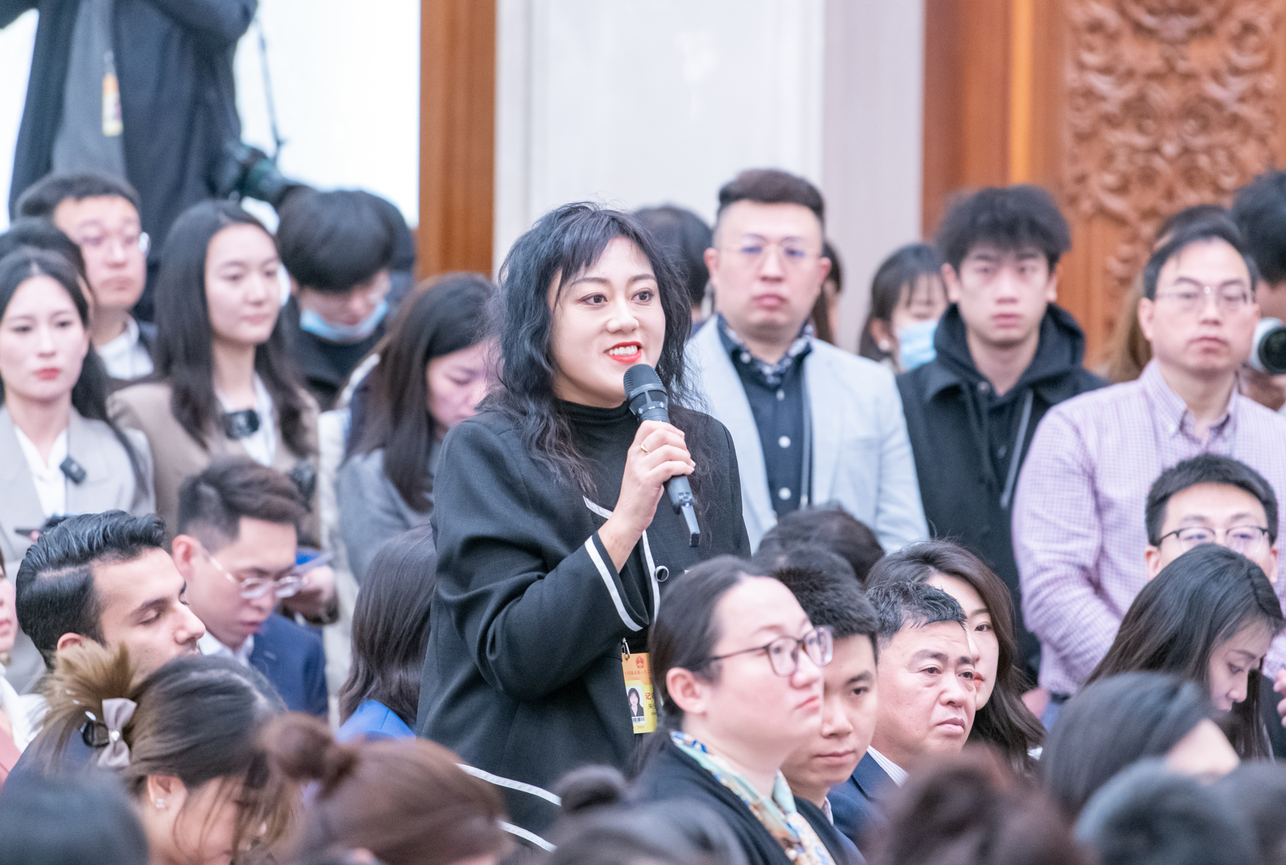 3月4日,十四屆全國人大二次會議在北京人民大會堂舉行新聞發(fā)布會,大會發(fā)言人婁勤儉就大會議程和人大工作相關(guān)問題回答中外記者的提問。圖為本報記者提問。 本報記者 王建軍 攝