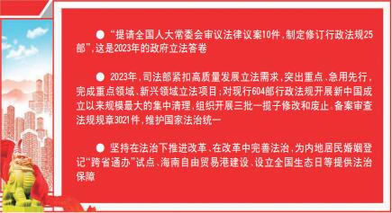 “提請(qǐng)全國(guó)人大常委會(huì)審議法律議案10件,制定修訂行政法規(guī)25部”,這是2023年的政府立法答卷?!斗ㄖ稳?qǐng)?bào)》記者在采訪中發(fā)現(xiàn),最先吸引代表委員注意的法治成績(jī)就來(lái)自這句話。