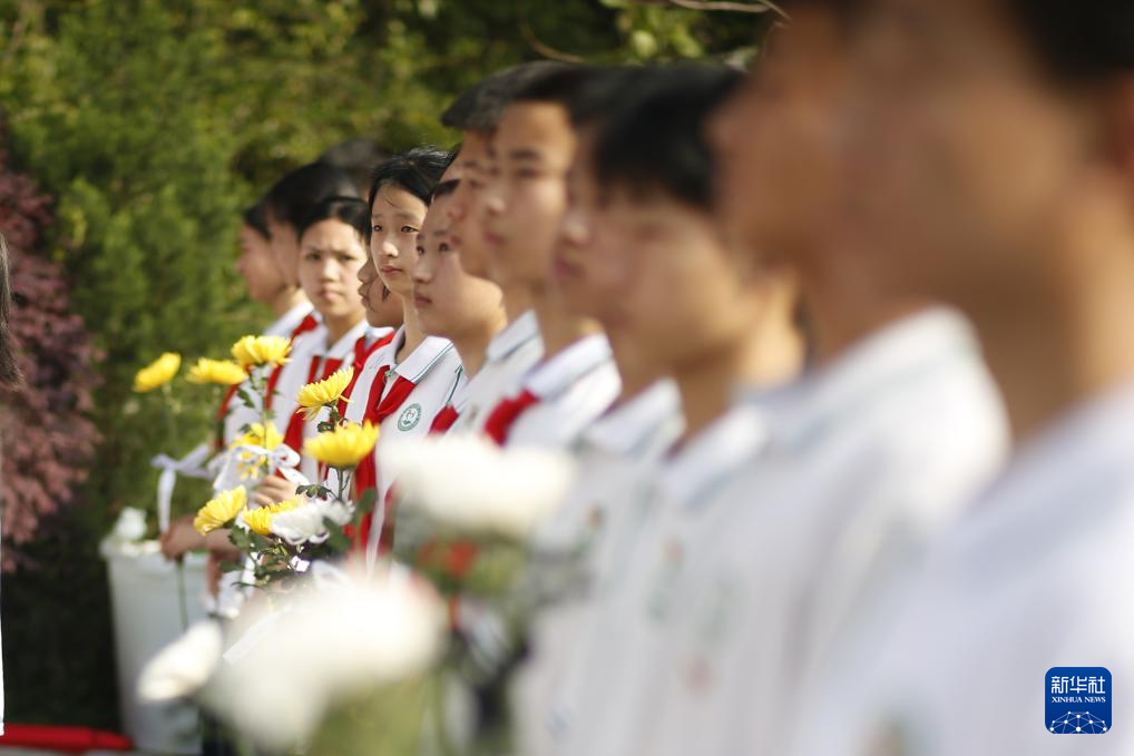 4月2日,在貴州省黔東南苗族侗族自治州劍河縣烈士陵園,學(xué)生們?cè)诹沂考o(jì)念碑前緬懷先烈。