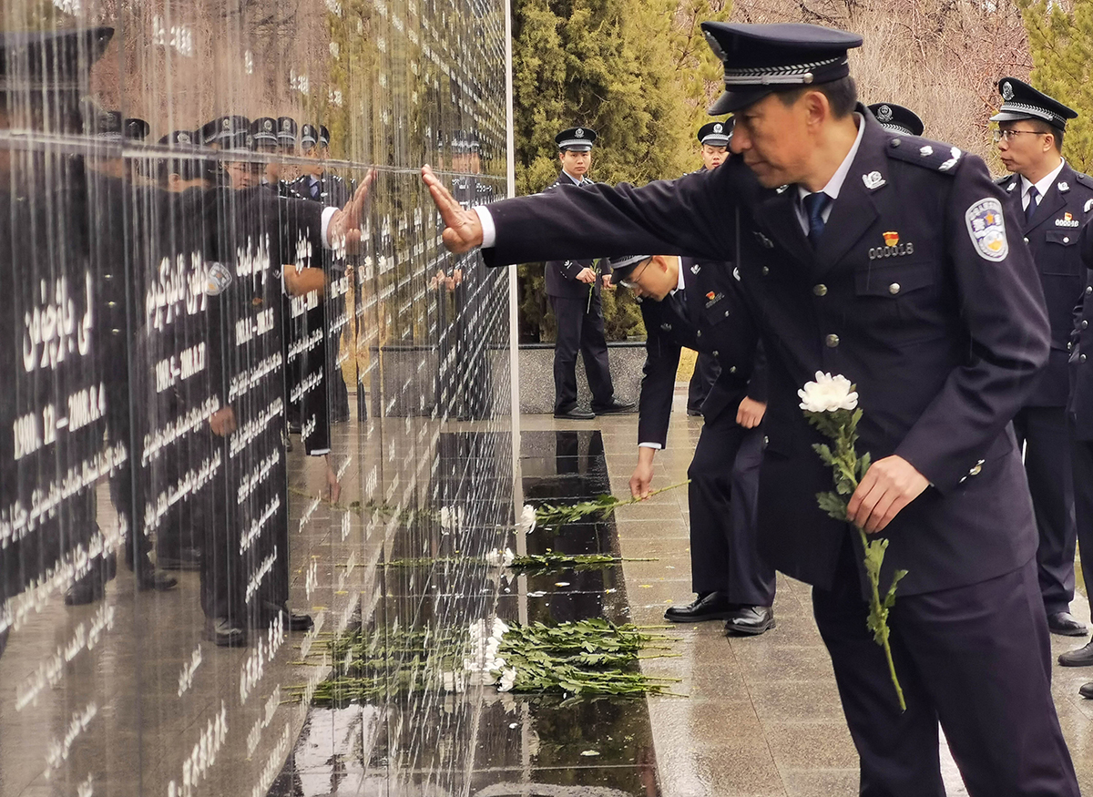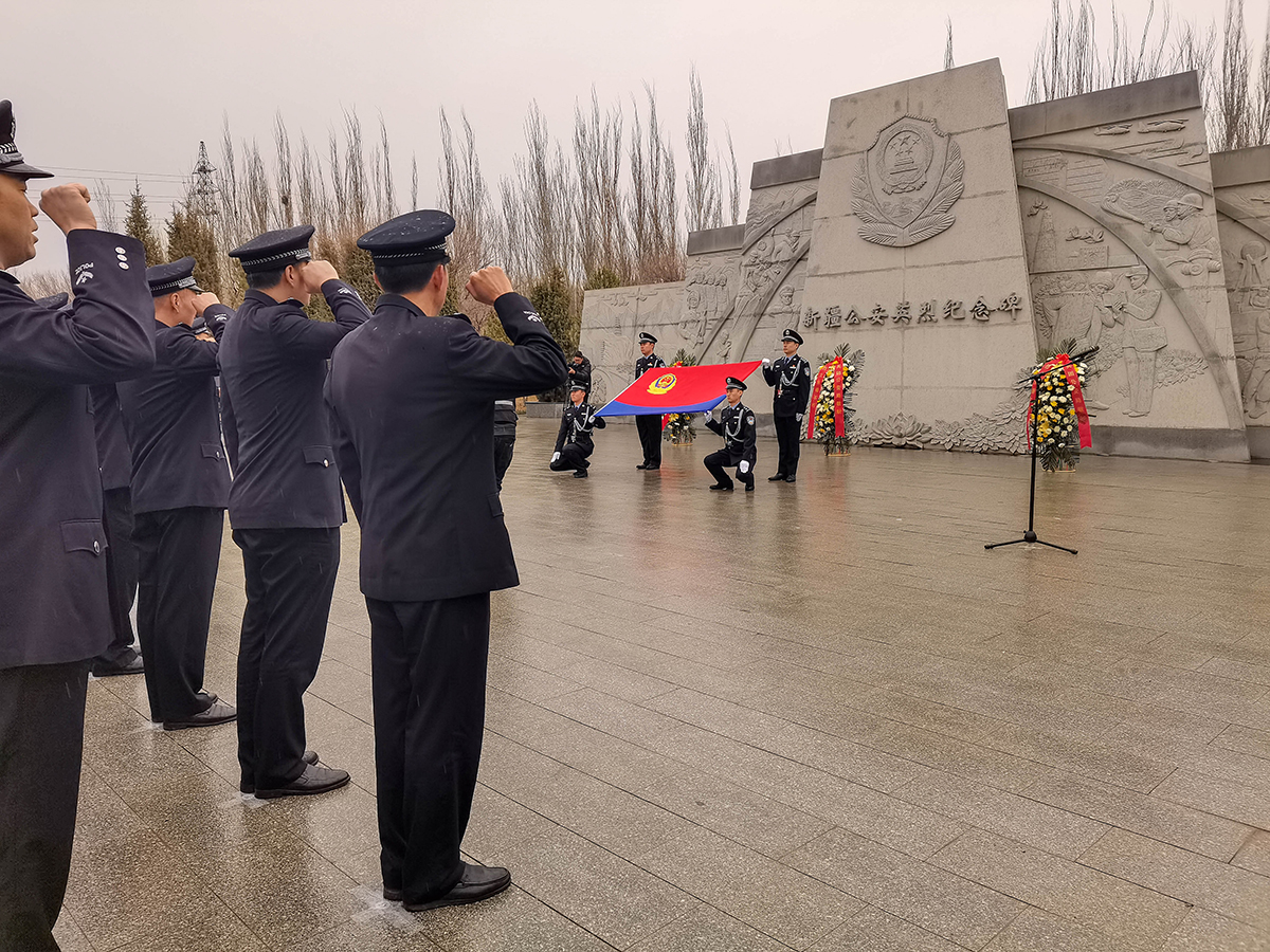 4月4日清明節(jié),新疆生產(chǎn)建設(shè)兵團公安局組織民警來到烏魯木齊市烈士陵園,開展“致敬公安英烈 激發(fā)奮進力量”主題黨日活動。參加活動的民輔警警容嚴整,面向新疆公安英烈墻默哀、鞠躬、敬獻鮮花,表達對烈士的敬意,緬懷英烈功績、繼承英烈遺志,追思他們忠誠于黨、不畏犧牲、無私奉獻的崇高革命精神,并在公安英烈墻前重溫入警誓詞。民警們還參觀了烈士事跡陳列館,追思烈士的英勇事跡。