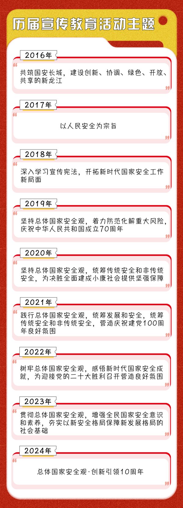 2024年4月15日,是第九個(gè)全民國家安全教育日,今年的活動主題是“總體國家安全觀·創(chuàng)新引領(lǐng)10周年”。