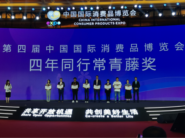 截至今年,中國(guó)國(guó)際消費(fèi)品博覽會(huì)(以下簡(jiǎn)稱“消博會(huì)”)已成功舉辦四屆,給眾多國(guó)內(nèi)外展商留下深刻印象,越來(lái)越多的新朋友成為消博老友,持續(xù)多年參展,共享開(kāi)放機(jī)遇。4月18日,第四屆消博會(huì)為中國(guó)銀行、博柏利Burberry、復(fù)星集團(tuán)、愛(ài)丁頓洋酒、愛(ài)爾蘭國(guó)家館、傲勝、愛(ài)樂(lè)活跨境免稅健康商城等42家連續(xù)參展的贊助商、參展商代表頒發(fā)“四年同行常青藤獎(jiǎng)”。