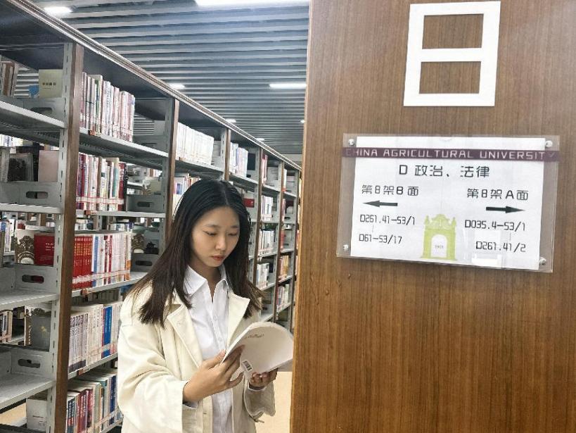 中國(guó)農(nóng)業(yè)大學(xué)青年教工石洋在圖書館閱覽