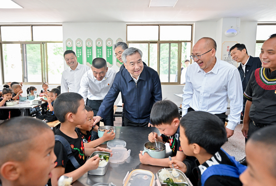 5月29日至6月1日,中共中央政治局常委、中央紀(jì)委書記李希到四川調(diào)研。這是5月30日,李希在樂山市馬邊彝族自治縣小谷溪村學(xué)校考察。新華社記者 岳月偉 攝