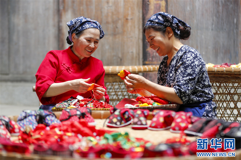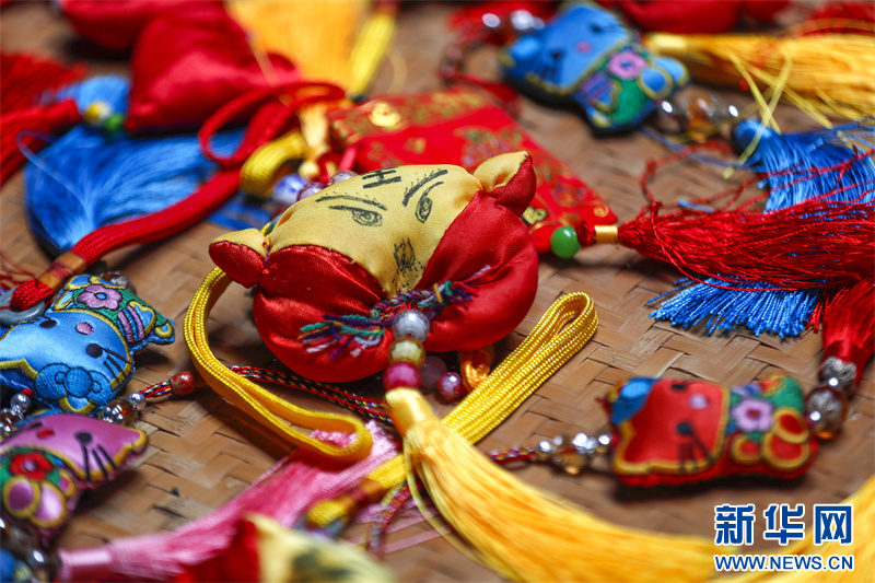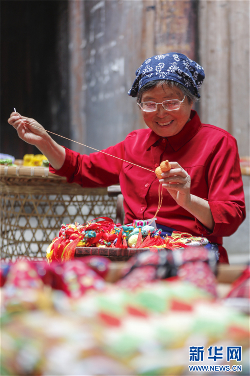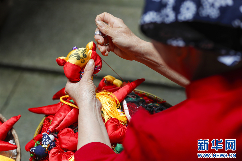 臨近端午佳節(jié),在安徽省黃山市歙縣許村鎮(zhèn)許村村,村民用五彩絲線、棉綢布、草藥香料等材料,巧妙地縫制出造型各異、繽紛多彩的非遺“徽州端午錦”,蘊(yùn)含平安健康的美好祝愿,深受人們喜愛(ài)。 新華網(wǎng)發(fā)(施亞磊 攝)