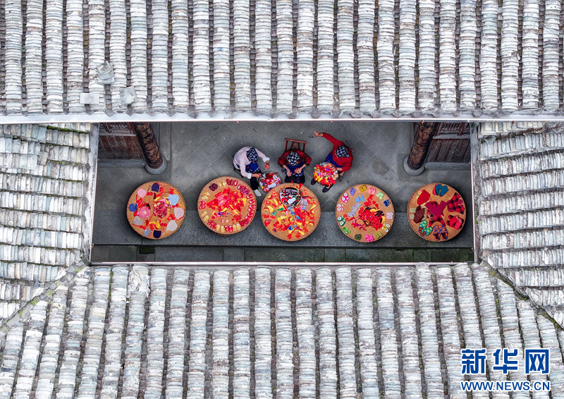 6月4日,在安徽省黃山市歙縣許村鎮(zhèn)許村村,村民手工縫制非遺“徽州端午錦”。