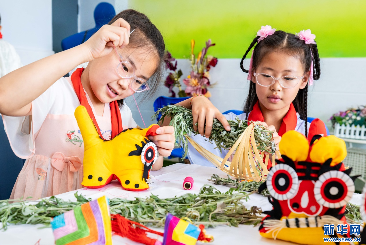 6月6日,呼和浩特市玉泉區(qū)通順街小學學生在“我們的節(jié)日·端午”主題活動上縫制布老虎。新華網(wǎng)發(fā)(丁根厚 攝)