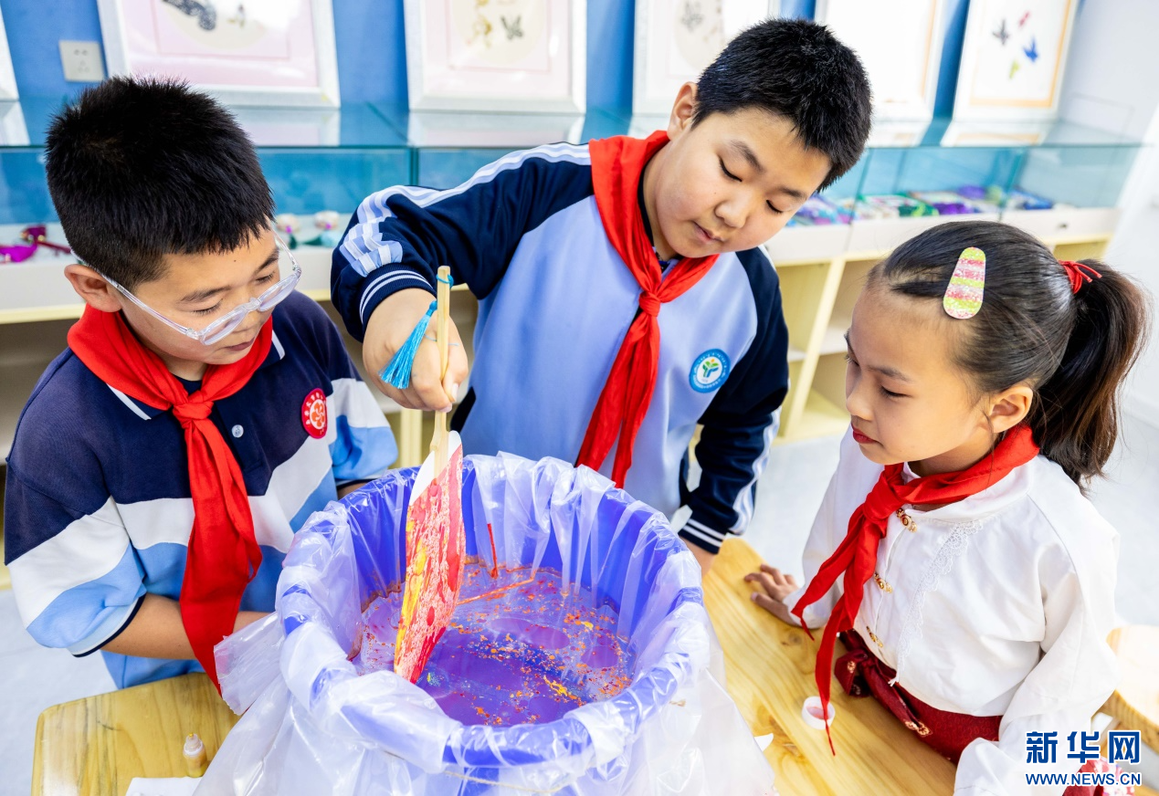 6月6日,呼和浩特市玉泉區(qū)南柴火市街小學學生在“我們的節(jié)日·端午”主題活動上制作漆扇。新華網(wǎng)發(fā)(丁根厚 攝)