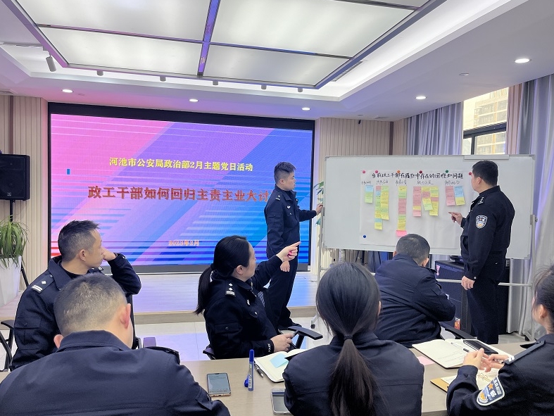 圖為河池市公安局政治部黨支部開展主題黨日活動(dòng)。