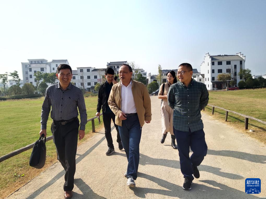 2019年10月22日,徐利民(前中)在浙江省金華市浦江縣上山考古遺址公園工作。新華社發(fā)