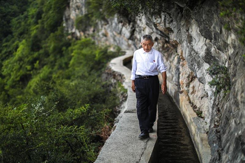 他帶領(lǐng)村民,歷時30余年,在懸崖絕壁上開鑿出一條主渠長7200米、支渠長2200米的“生命渠”;他用實干兌現(xiàn)誓言,為改善山區(qū)群眾用水條件、實現(xiàn)脫貧致富作出突出貢獻(xiàn);他一心為民、埋頭苦干、百折不撓……
