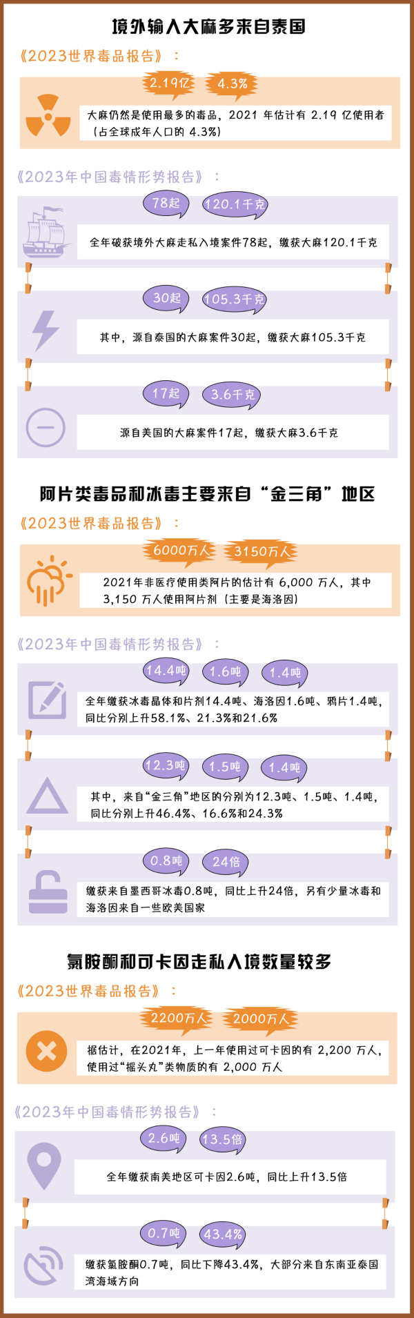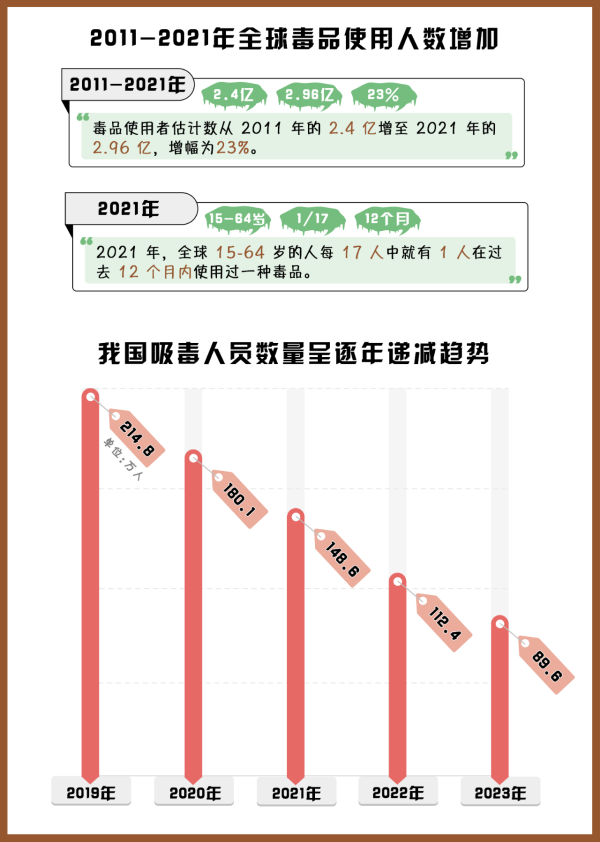 (制作:法治網(wǎng)輿情中心 數(shù)據(jù)來源:《2023年世界毒品報(bào)告》《2023年中國毒情形勢(shì)報(bào)告》)