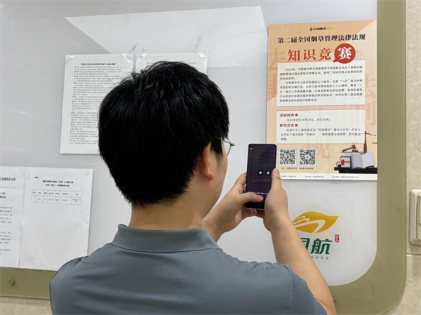 圖為衡陽市煙草專賣局員工掃碼參與線上答題活動(dòng)