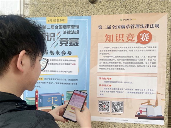 為推動“八五”普法走深走實,浙江省溫州市煙草專賣局以全國煙草管理法律法規(guī)知識競賽活動為契機(jī),創(chuàng)新普法宣傳形式,打造員工、零售戶、消費者共同參與的立體化普法矩陣,持續(xù)提升普法“輻射面”,繪好普法“風(fēng)景線”,在全市掀起煙草專賣法律法規(guī)學(xué)習(xí)活動熱潮,助力營造全社會尊法學(xué)法守法用法的良好法治氛圍。