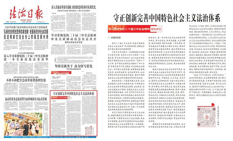 黨的二十屆三中全會對“完善中國特色社會主義法治體系”作出重要部署,強(qiáng)調(diào)法治是中國式現(xiàn)代化的重要保障。