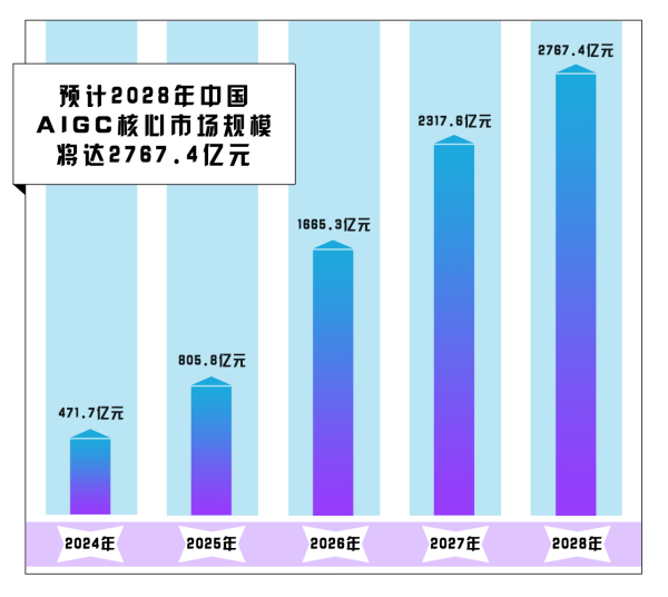 艾媒咨詢發(fā)布的《2023年中國AIGC行業(yè)發(fā)展研究報告》顯示,2024年我國生成式人工智能行業(yè)核心市場規(guī)模預(yù)計為471.7億元,2028年將達(dá)2767.4億元,規(guī)模相較2024年翻了近5倍。持續(xù)擴大的市場規(guī)模,也面臨著風(fēng)險和挑戰(zhàn)。
