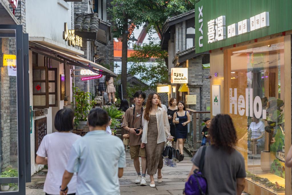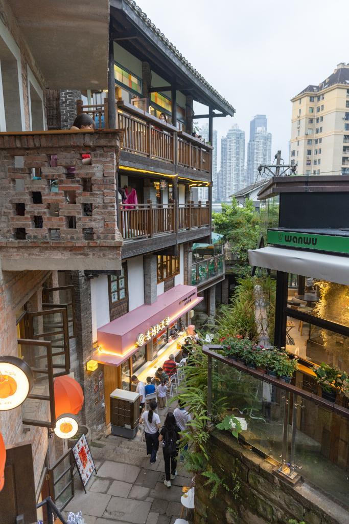 據(jù)南岸區(qū)商務(wù)委副主任劉江勇介紹,改造后的下浩里自2022年11月開街以來,入住商家已達(dá)110家,70余棟建筑中,招商率超過9成,整體出租率達(dá)90%。