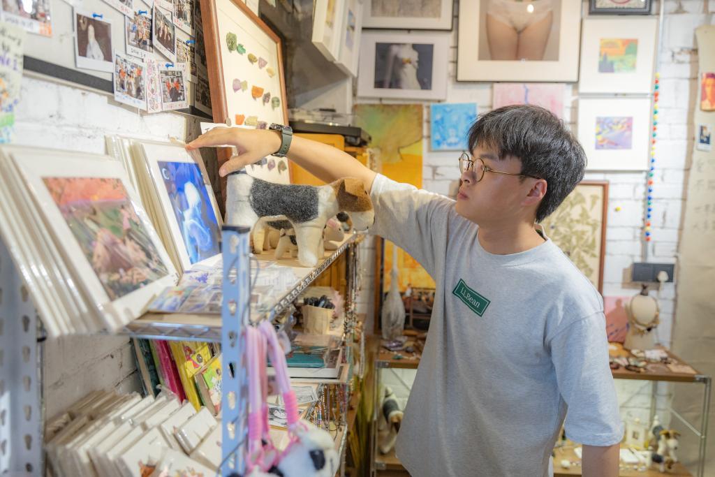 在老街一處支路的梯坎上,有一家名為“YEE藝術(shù)雜貨”的小店,琳瑯滿目的藝術(shù)品,引得不少顧客一邊觀賞,一邊拍照?!拔业牟簧偎囆g(shù)家朋友,都在我店里寄賣作品?!钡曛饕捉苷f,“門店從開業(yè)到現(xiàn)在,一直是處于盈利狀態(tài),人流量大的時(shí)候,單日進(jìn)店人數(shù)超過1000人次?!?/p>