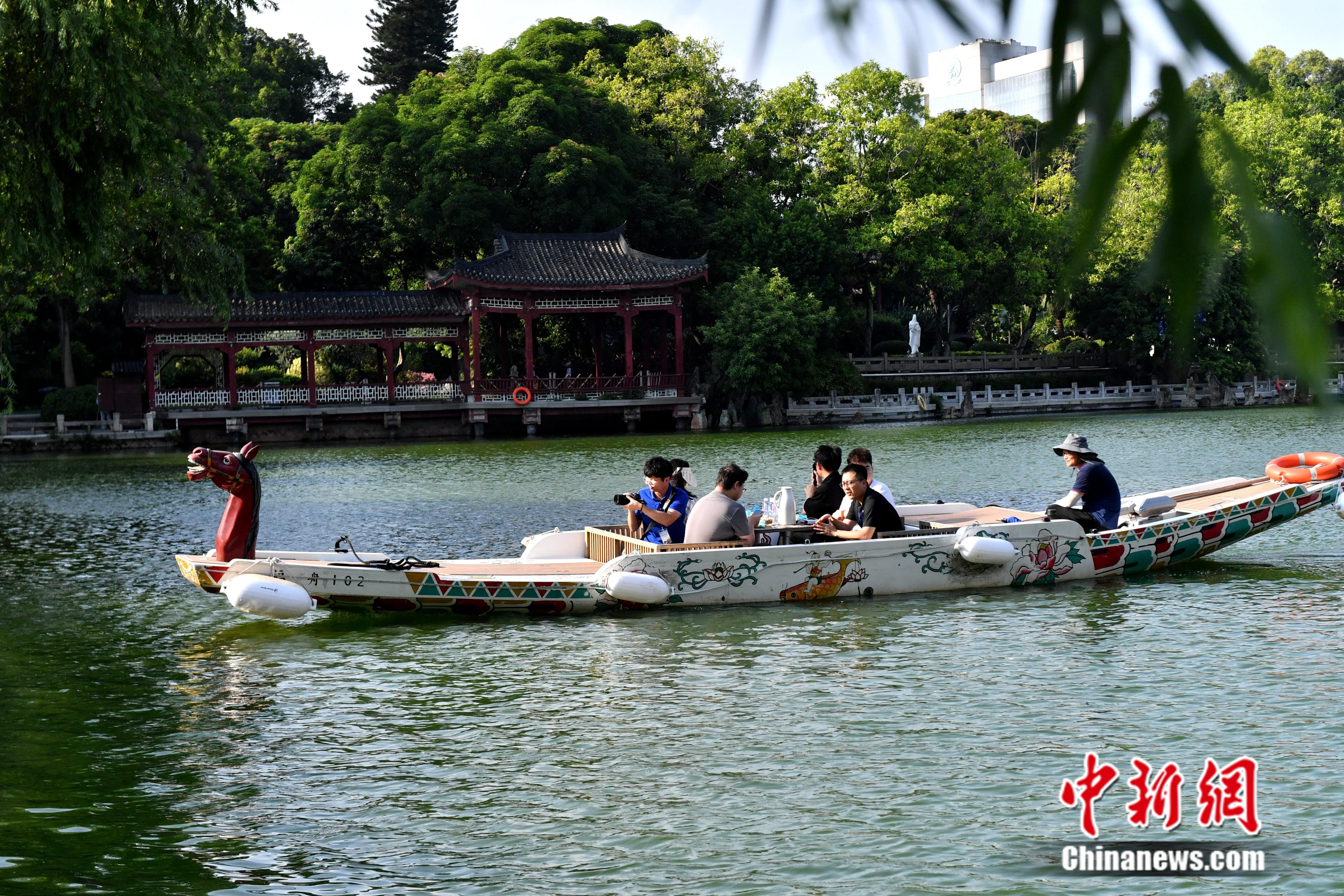 游客乘船游覽福州西湖。呂明 攝