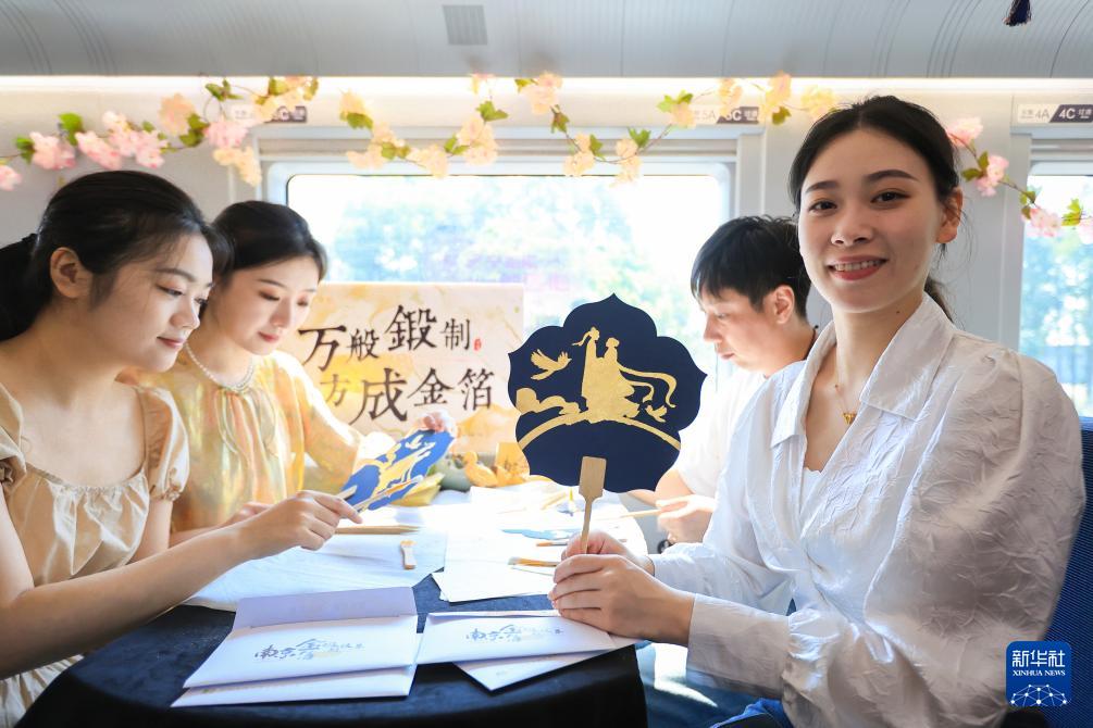當日,中國鐵路上海局集團有限公司南京客運段在G7393次和G132次高鐵列車上開展“七夕寧相匯 文博敘匠心”主題活動?;顒又校瑏碜阅暇┒嗉椅牟﹫鲳^的工作人員進行傳統(tǒng)手工藝展示,并邀請旅客互動體驗,讓旅客在旅途中感受傳統(tǒng)文化的魅力,迎接七夕節(jié)的到來。