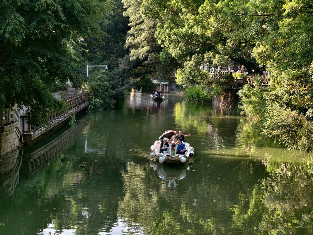 8月7日,游客乘坐“福舟”游船游覽福州白馬河。新華社記者 姜克紅 攝