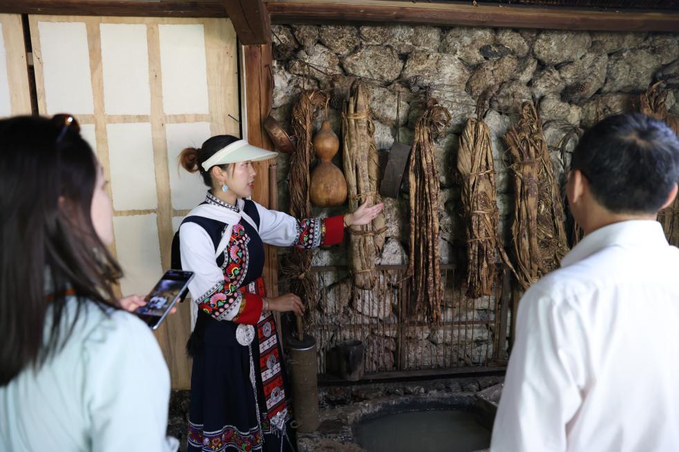 7月31日,游客在麗江市玉龍納西族自治縣玉湖村的一處納西族村民家中體驗當(dāng)?shù)靥厣幕?。新華社記者 呂帥 攝