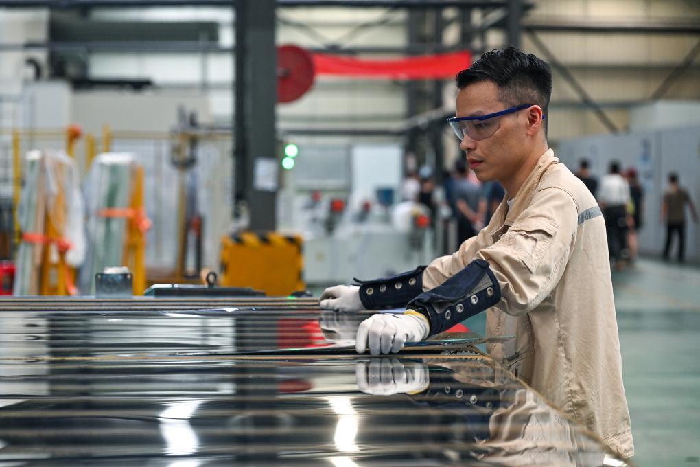 7月27日,湖南旗濱電子玻璃股份有限公司工作人員在生產(chǎn)線上檢查產(chǎn)品品質(zhì)。新華社記者 李鑫 攝