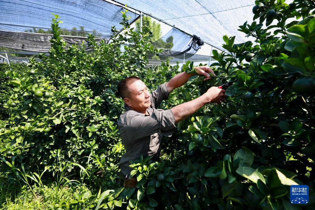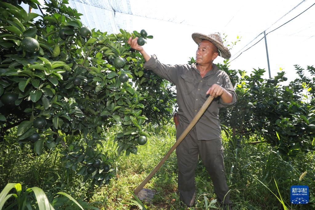 8月12日,福建南平市延平區(qū)爐下鎮(zhèn)斜溪村村民王崇年在護(hù)理果園?!⌒氯A社記者 姜克紅 攝