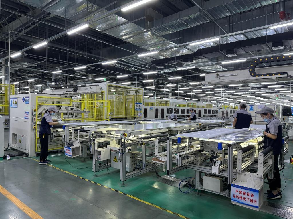 7月31日,工人在山西華儲(chǔ)光電有限公司新建的光伏產(chǎn)品制造車間忙碌。新華社記者 王學(xué)濤 攝