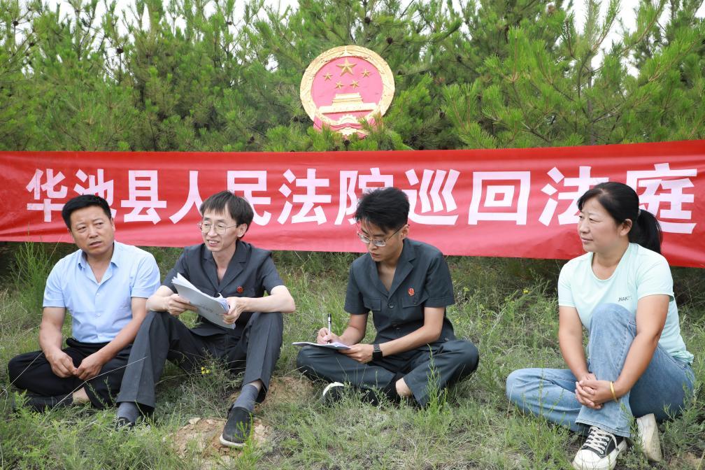 掛起國(guó)徽,拉好橫幅,在甘肅省慶陽(yáng)市華池縣悅樂(lè)鎮(zhèn)黃土塬的一塊山頭上,法官與干部群眾席地而坐,一個(gè)簡(jiǎn)易的巡回法庭搬到了田間地頭。面對(duì)一樁土地糾紛,鄉(xiāng)親們各抒己見(jiàn),法官居中說(shuō)法,近距離為老百姓調(diào)解矛盾。