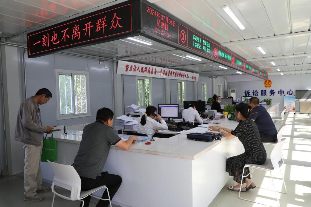 7月4日,群眾在慶陽(yáng)市西峰區(qū)人民法院訴訟服務(wù)中心辦理訴訟事項(xiàng)。新華社記者梁軍 攝
