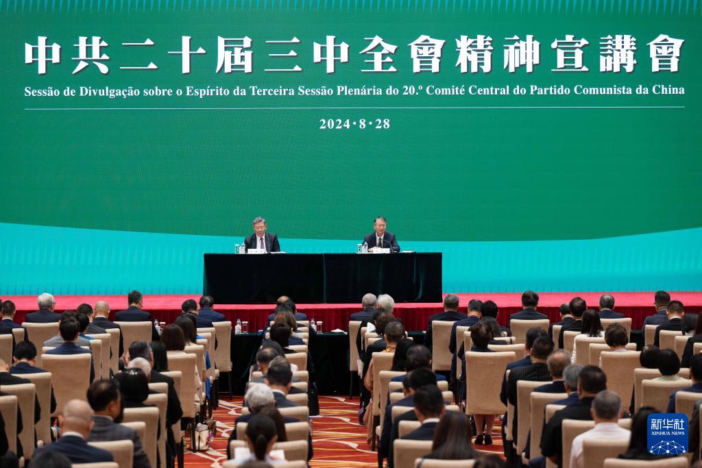8月28日,學習貫徹黨的二十屆三中全會精神中央宣講團在澳門特區(qū)為社會各界人士宣講。新華社記者 張金加 攝