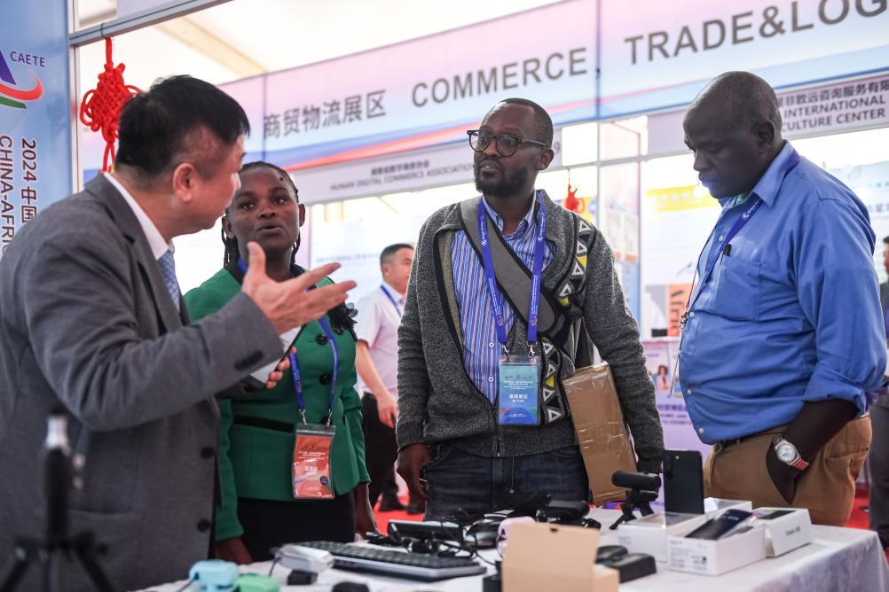 5月9日,參展商在肯尼亞首都內羅畢舉辦的中非經貿博覽會走進非洲巡展上與來賓交談。新華社記者李亞輝 攝