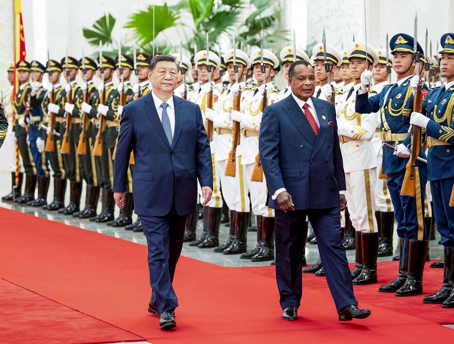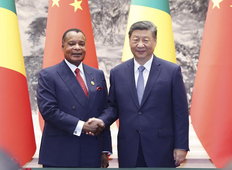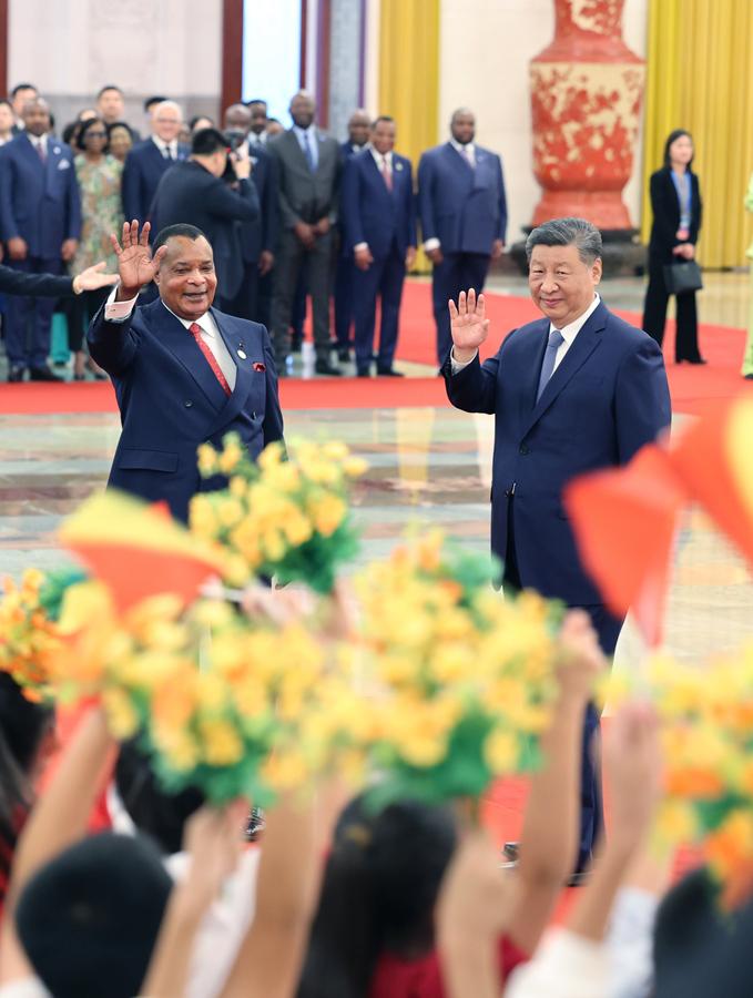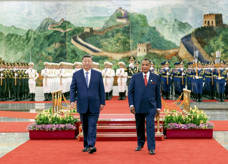 9月6日上午,國家主席習(xí)近平在北京人民大會堂同來華出席中非合作論壇北京峰會并進(jìn)行國事訪問的剛果(布)總統(tǒng)薩蘇舉行會談。