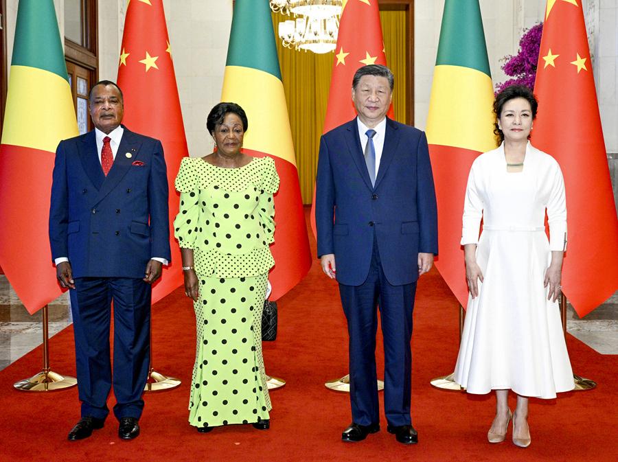 9月6日上午,國家主席習(xí)近平在北京人民大會堂同來華出席中非合作論壇北京峰會并進(jìn)行國事訪問的剛果(布)總統(tǒng)薩蘇舉行會談。會談前,習(xí)近平和夫人彭麗媛在人民大會堂北大廳為薩蘇和夫人安托瓦內(nèi)特舉行歡迎儀式。這是習(xí)近平和彭麗媛同薩蘇和安托瓦內(nèi)特合影。