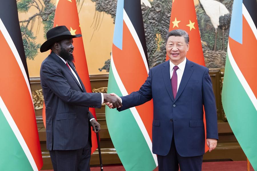 9月6日晚,國(guó)家主席習(xí)近平在北京人民大會(huì)堂會(huì)見來華出席中非合作論壇北京峰會(huì)的南蘇丹總統(tǒng)基爾。