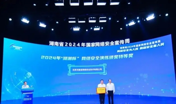 啟動儀式上,“中國好人”、警察、企業(yè)家、中小學生等10位代表聯(lián)合宣讀《共建網絡安全倡議》,倡議社會各界誠信用網、合規(guī)用網、安全上網、文明上網。現(xiàn)場舉行了2024年“湖湘杯”網絡安全應急演練頒獎儀式,北京天融信網絡安全技術有限公司、綠盟(湖南)網絡安全技術有限公司、湖南省電子信息產業(yè)研究院等20家單位分別榮獲特等獎及一、二、三等獎,楊浩東等為獲獎單位頒獎。