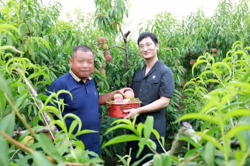 2023年8月,江蘇省灌南縣人民法院灌河流域環(huán)境資源法庭副庭長高濤(右)回訪本案當事人,正遇到當事人的桃子豐收。姜拼并 攝