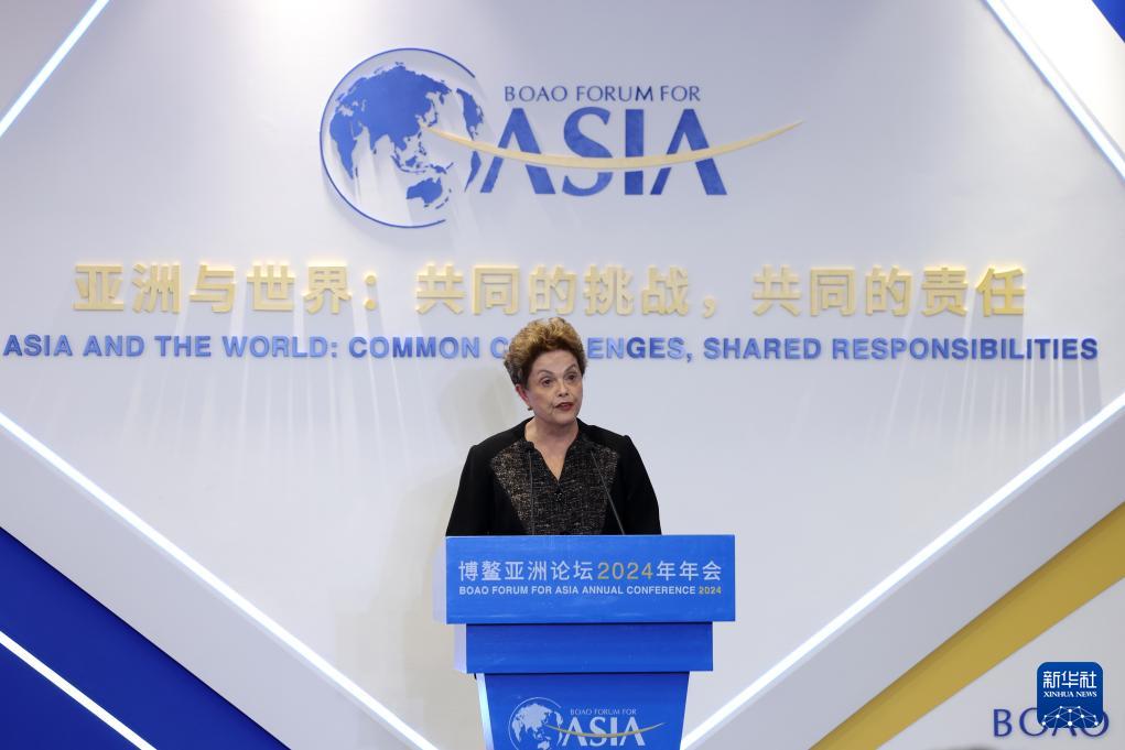 ??2024年3月27日,新開發(fā)銀行行長迪爾瑪·羅塞芙在博鰲亞洲論壇2024年年會(huì)“全球南方的興起”分論壇上致辭。 新華社記者 唐如峰 攝