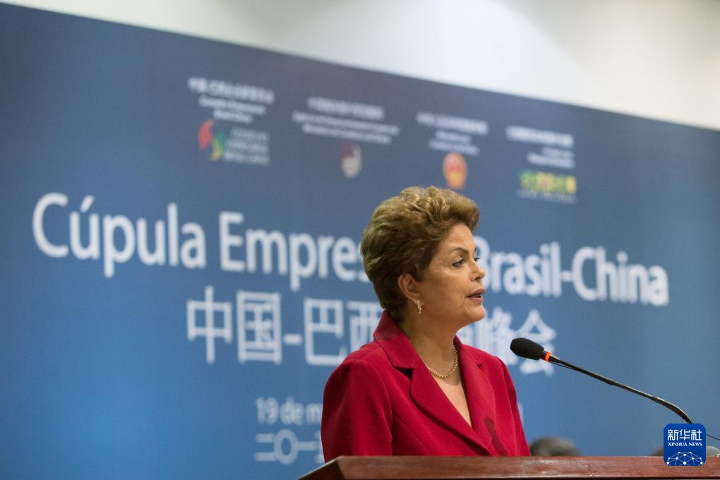 ??2015年5月19日,在巴西首都巴西利亞,時(shí)任巴西總統(tǒng)迪爾瑪·羅塞芙在中國—巴西工商峰會(huì)閉幕式上致辭。 新華社記者 徐子鑒 攝