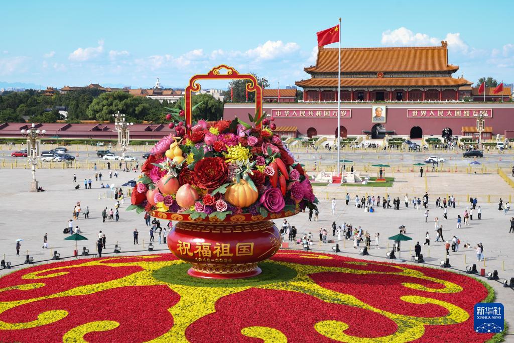 9月25日拍攝的天安門廣場“祝福祖國”巨型花籃。