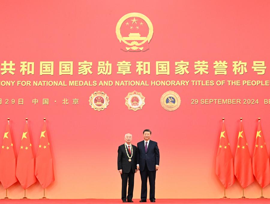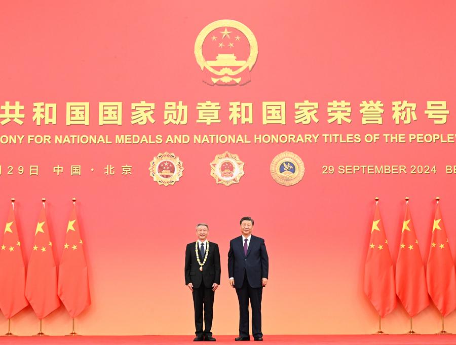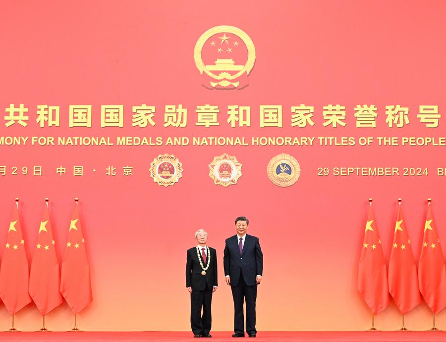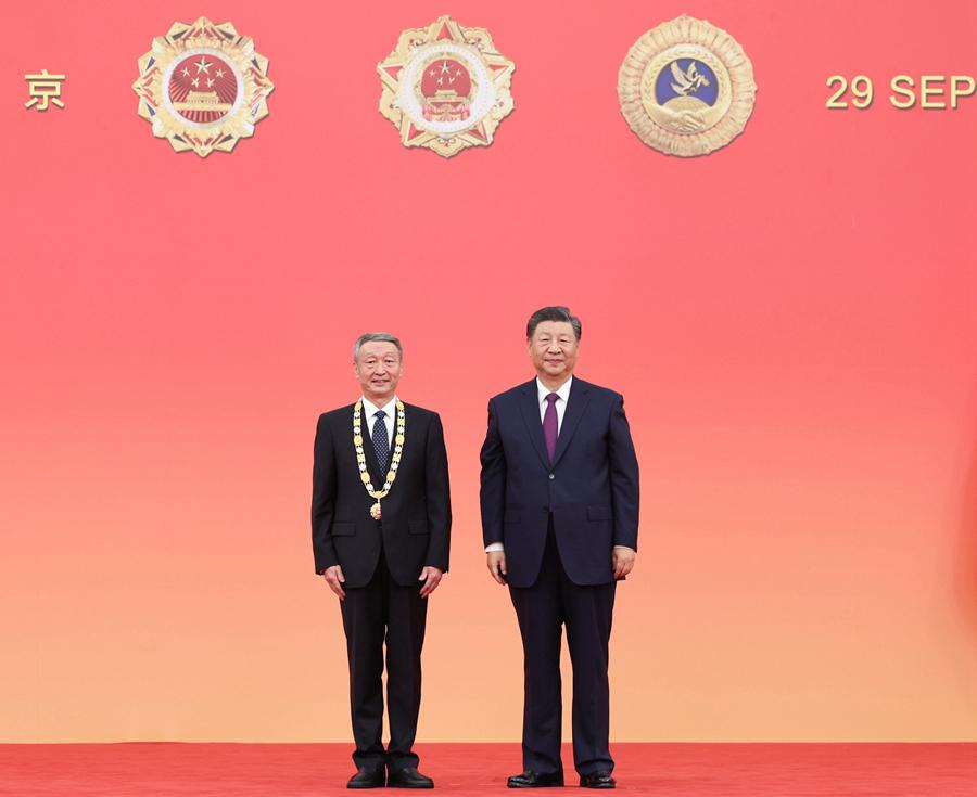 9月29日,中華人民共和國國家勛章和國家榮譽(yù)稱號頒授儀式在北京人民大會堂金色大廳隆重舉行。中共中央總書記、國家主席、中央軍委主席習(xí)近平向國家勛章和國家榮譽(yù)稱號獲得者頒授勛章獎?wù)虏l(fā)表重要講話。