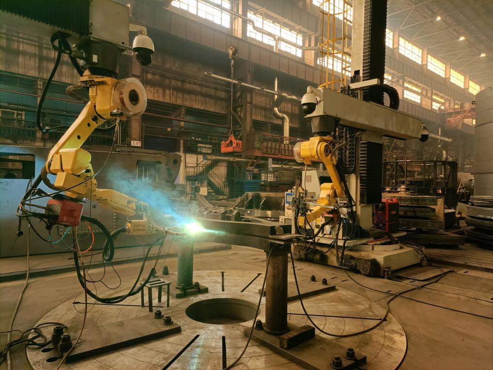 在輸入焊接指令后,焊接機(jī)器人便按照預(yù)設(shè)保持不間斷作業(yè)。9月初,哈電集團(tuán)電機(jī)公司數(shù)字化建設(shè)取得新進(jìn)展——磁極焊接機(jī)器人工作站正式投入生產(chǎn)運(yùn)行,生產(chǎn)效率比人工焊接提高約40%。