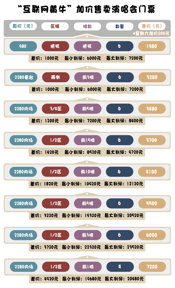 盡管如此,對于背后有二級資源的“互聯(lián)網(wǎng)黃?!眮碚f,售賣“黃牛”票并不是難事。以某位在廣東地區(qū)深受歡迎的歌手為例,其預(yù)計在今年11月舉行多場個人演唱會,但有粉絲表示,演唱會的門票仍“一秒售罄”。某二手置物平臺數(shù)據(jù)顯示,演唱會門票并非全部售空,部分門票流入“互聯(lián)網(wǎng)黃?!敝?,原價為2280元的內(nèi)場票,因位置不同被炒至3280元至7200元不等。此外,若趕上演唱會在星期六舉辦,買家還需要額外支付200元的“熱門時段搶票費用”。面對“一人一證”的入場機制,“互聯(lián)網(wǎng)黃?!钡纳馑坪醪⑽词艿接绊憽?/p>