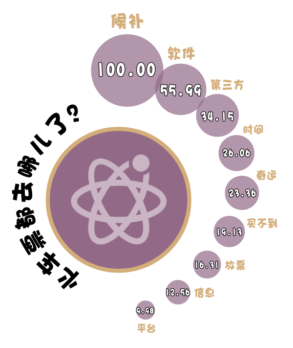(制作:法治網(wǎng)輿情中心 數(shù)據(jù)來源:收集嗶哩嗶哩《科技黃牛大戰(zhàn)12306,火車票都去哪了?》視頻下3163條一級評論,對選取的信息進(jìn)行數(shù)據(jù)清洗及自然語言處理,將熱度最高的詞語規(guī)定為100)