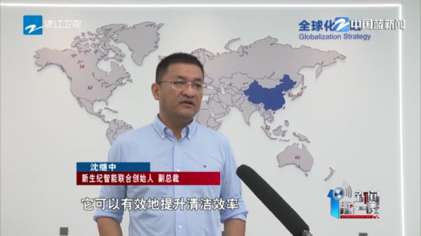 新生紀(jì)智能聯(lián)合創(chuàng)始人、副總裁 沈繼中:擁有非常強(qiáng)大的AI系統(tǒng),相對(duì)于傳統(tǒng)的清潔機(jī)器人,它可以有效地提升清潔效率,大概能夠提升10倍左右。