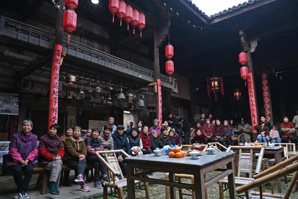浙江省杭州市桐廬縣深澳村,村民在深澳茶館觀看越劇演出。新華社記者 盧哲 攝