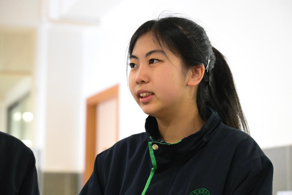 12月17日,澳門教業(yè)中學高一學生蔣麗萍在接受采訪。新華社記者 朱煒 攝