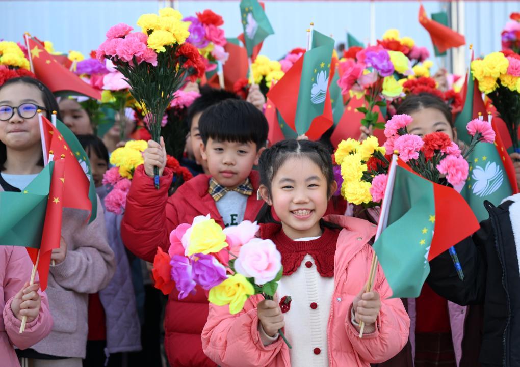 12月18日下午,中共中央總書記、國家主席、中央軍委主席習近平乘專機抵達澳門,出席將于20日舉行的慶祝澳門回歸祖國25周年大會暨澳門特別行政區(qū)第六屆政府就職典禮,并視察澳門。這是歡迎人群。新華社記者 謝環(huán)馳 攝