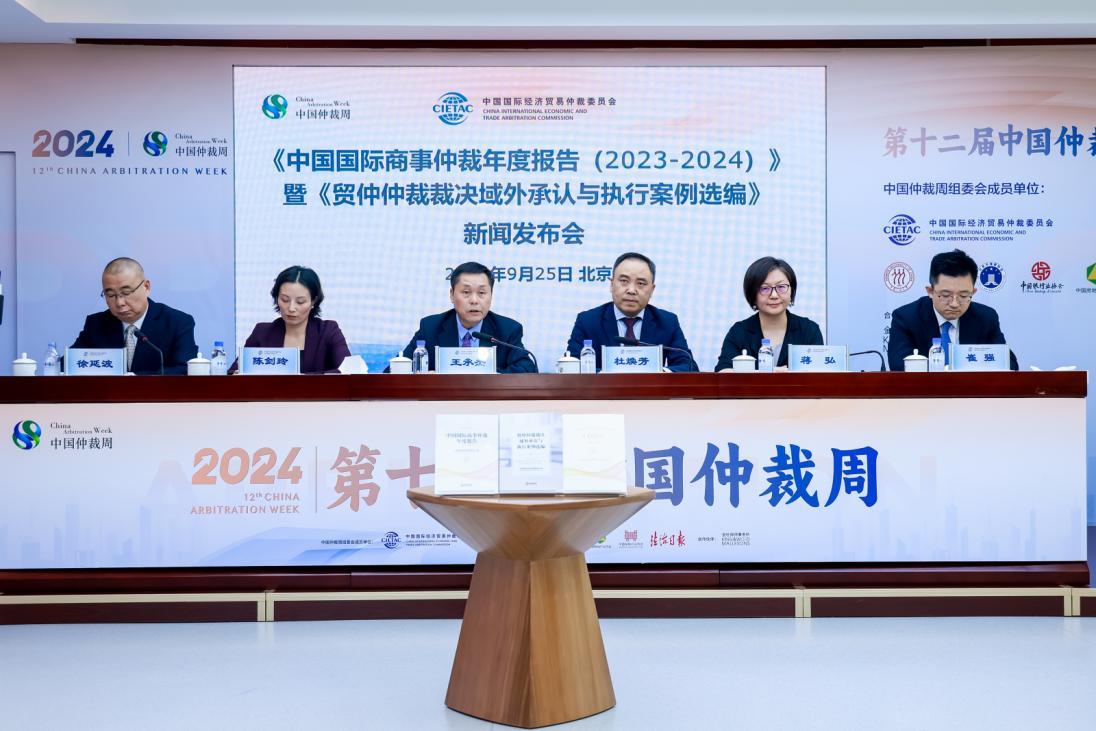 2024年9月25日,中國國際經(jīng)濟貿(mào)易仲裁委員會(以下簡稱“貿(mào)仲”)在北京召開新聞發(fā)布會,貿(mào)仲副主任兼秘書長王承杰在會上發(fā)布《中國國際商事仲裁年度報告(2023-2024)》(以下簡稱《2023-2024年度報告》)和《貿(mào)仲仲裁裁決域外承認(rèn)與執(zhí)行案例選編》(以下簡稱《執(zhí)行案例選編》)。貿(mào)仲黨委書記兼副秘書長徐延波主持發(fā)布會。